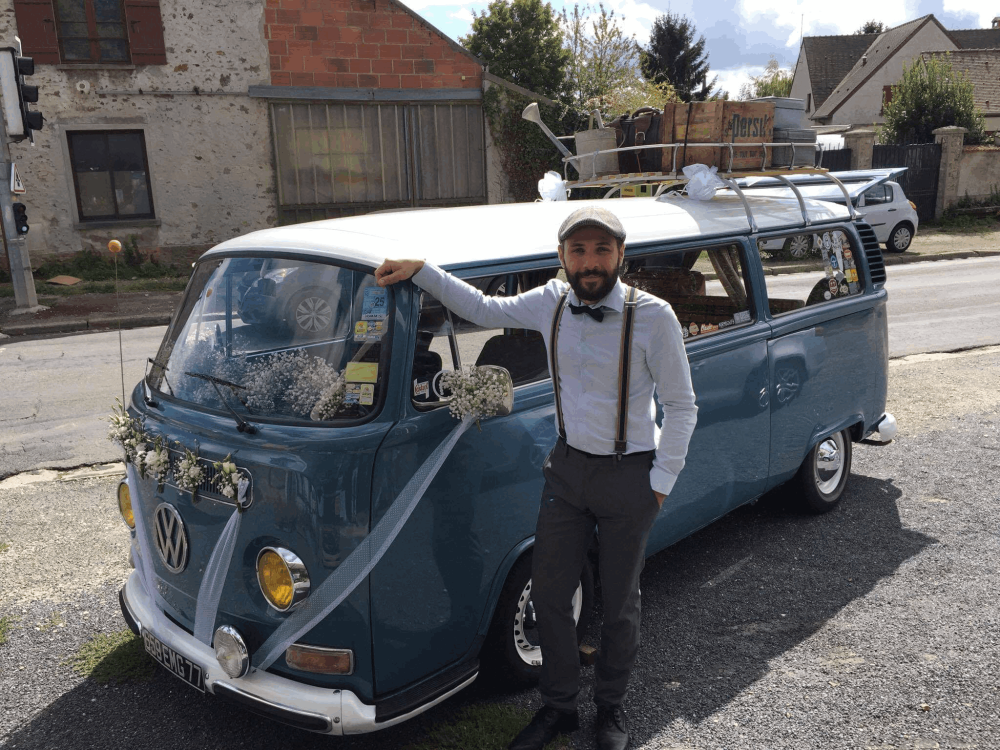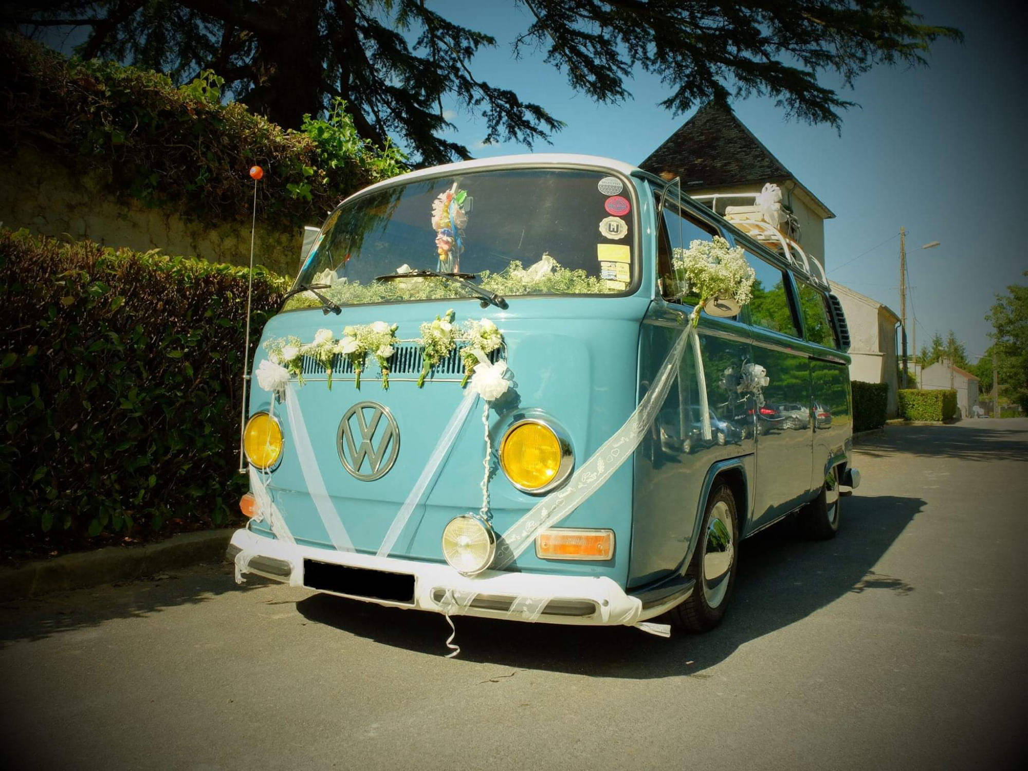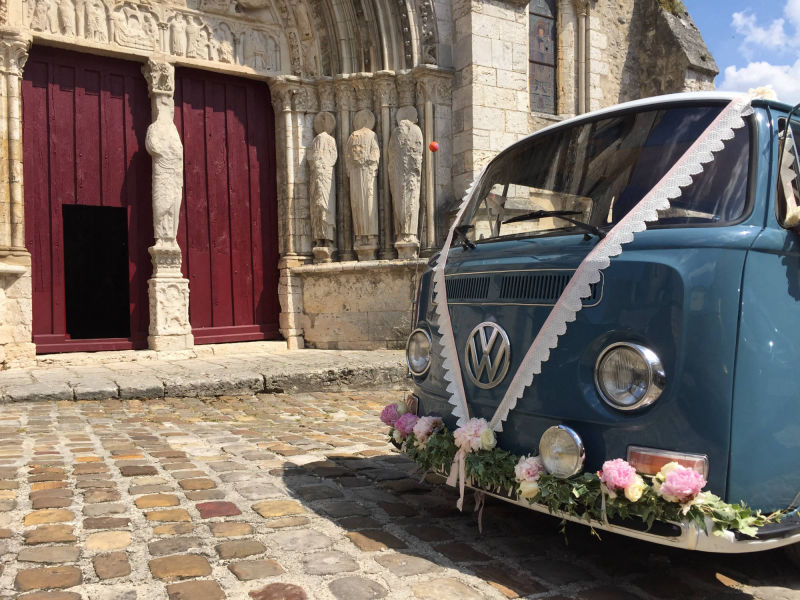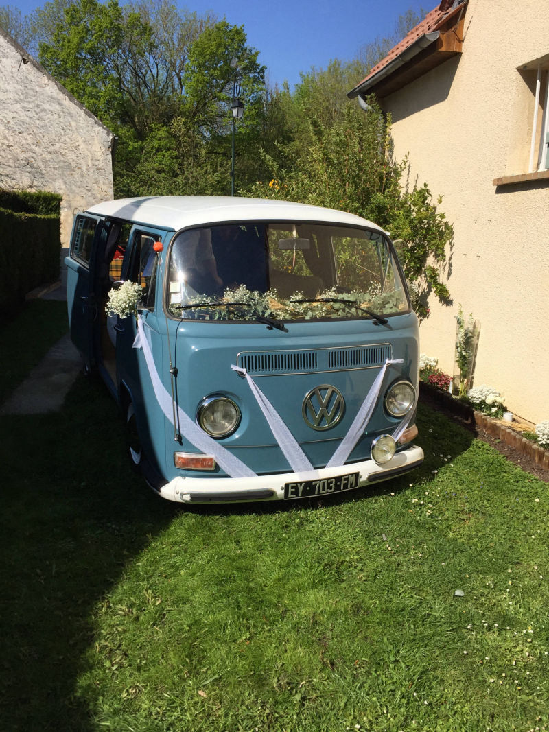 Vous revez d'un mariage original et vintage ? Vous souhaitez arriver à votre mariage à bord d'un véhicule ancien ? Notre combi VW Dove Blue de 1979 est là pour vous servir !! Déplacement possible partout en Ile de France (Départements 75, 77, 78, 91, 92, 93, 94 et 95) mais également les départements suivants : l'Aisne (02), l'Oise (60) et la Marne (51). Contactez-nous pour toute demande de tarifs ou d'informations;)