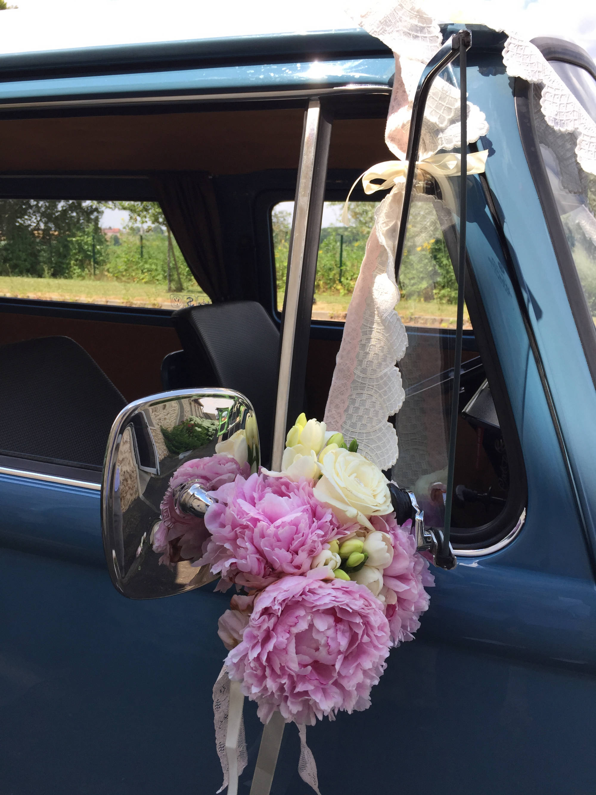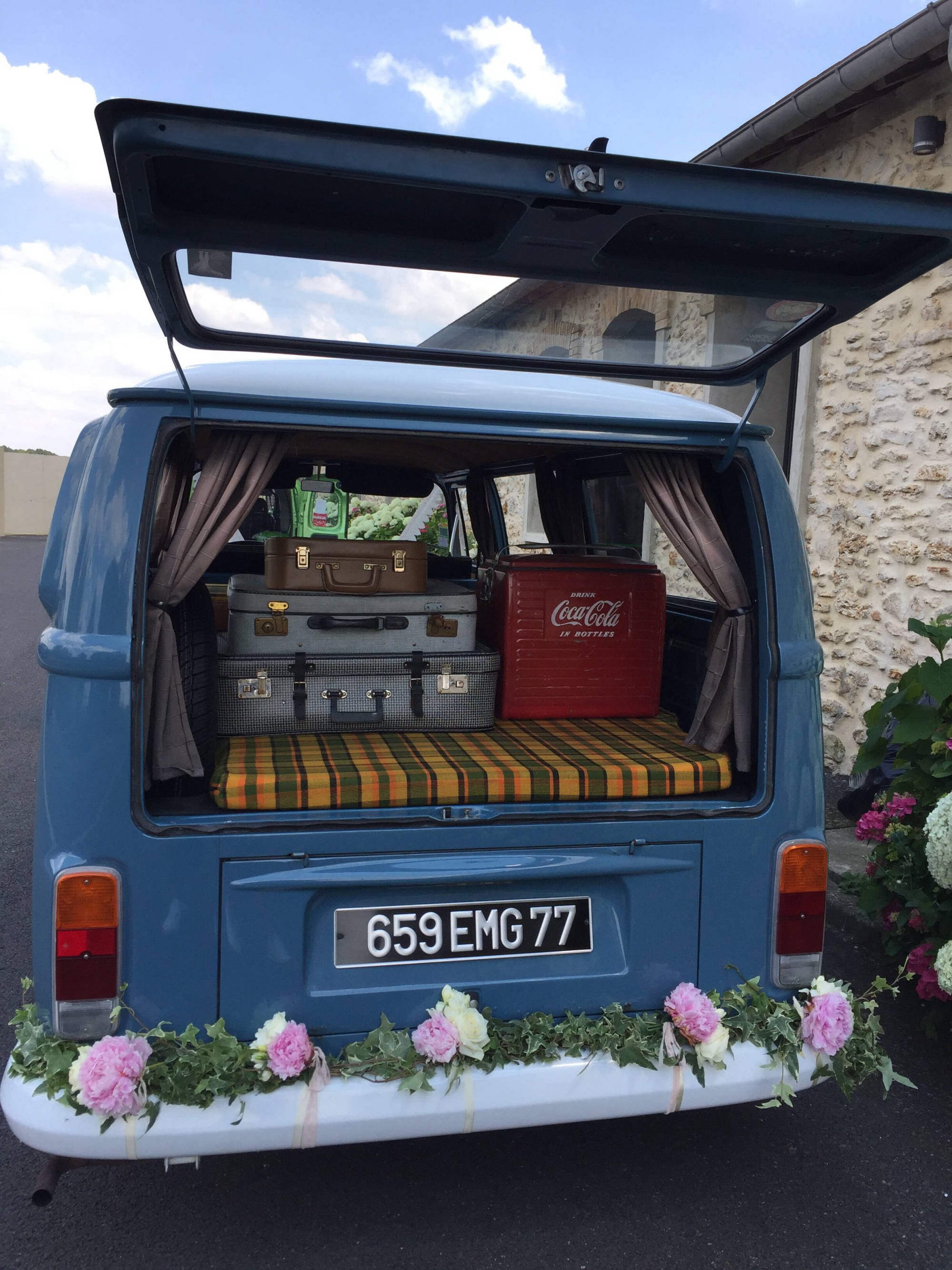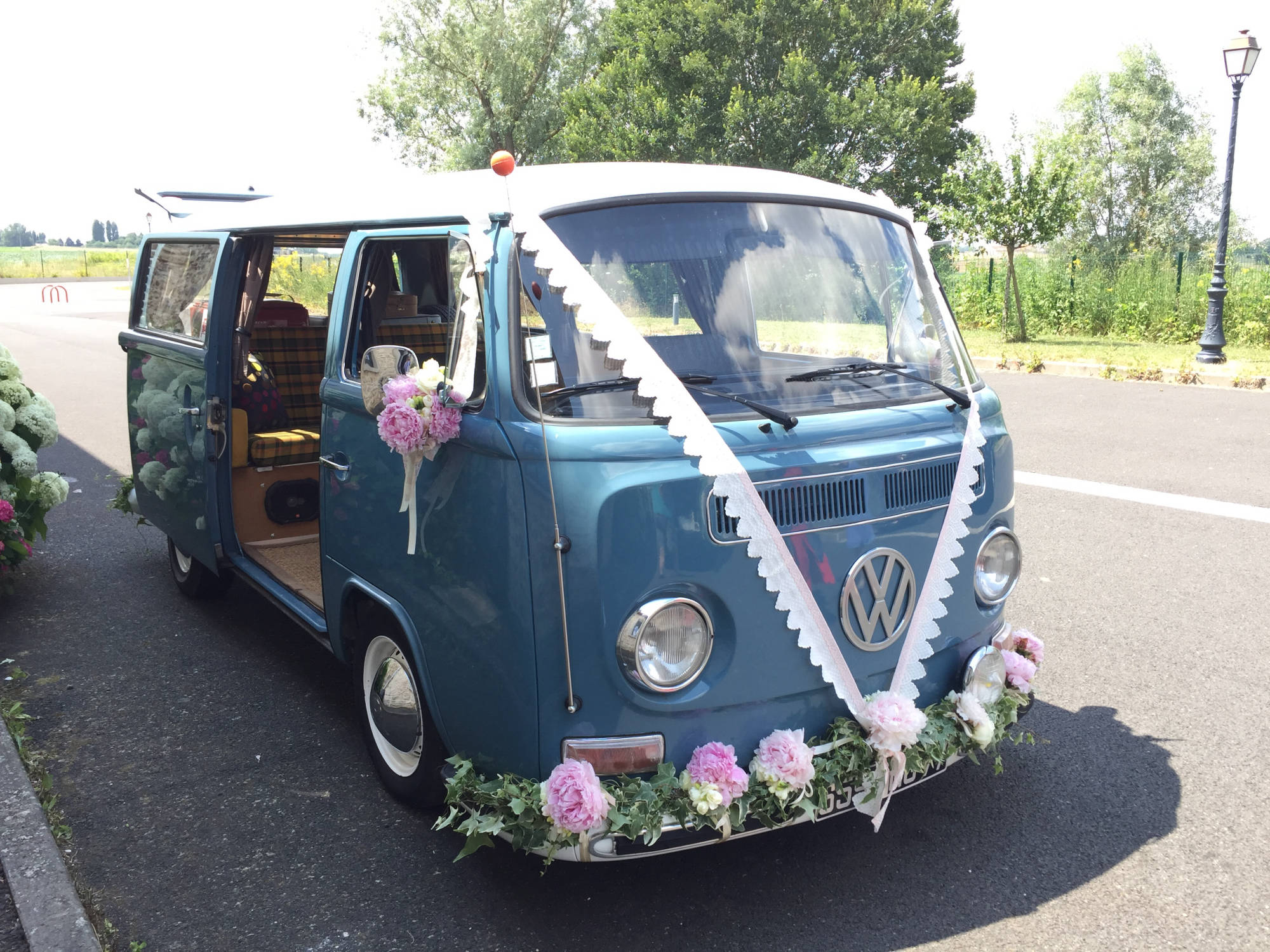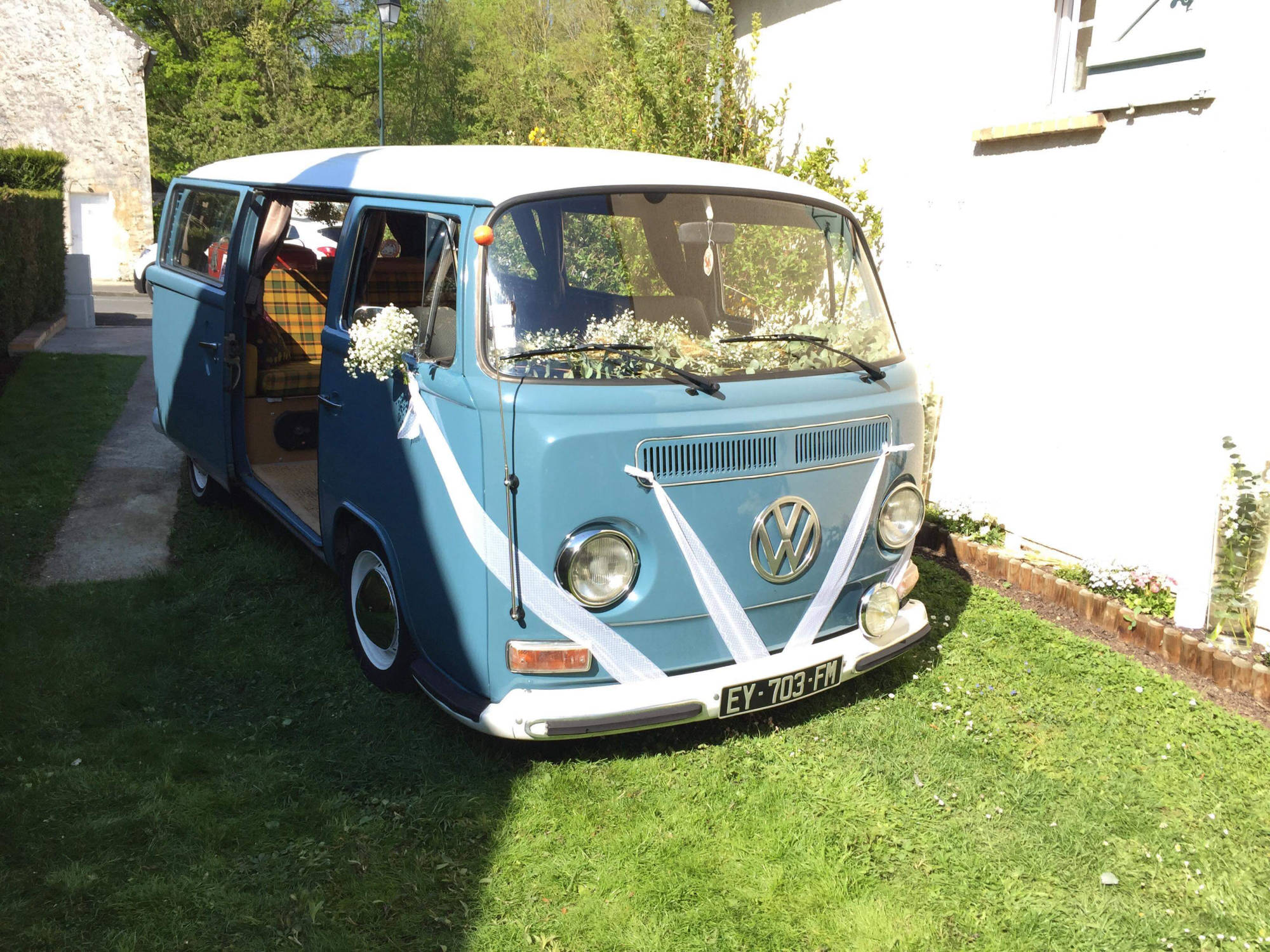 Vous revez d'un mariage original et vintage ? Vous souhaitez arriver à votre mariage à bord d'un véhicule ancien ? Notre combi VW Dove Blue de 1979 est là pour vous servir !! Déplacement possible partout en Ile de France (Départements 75, 77, 78, 91, 92, 93, 94 et 95) mais également les départements suivants : l'Aisne (02), l'Oise (60) et la Marne (51). Contactez-nous pour toute demande de tarifs ou d'informations;)